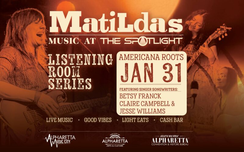 Missing Matildas Music Under the Pines? Don’t let winter weather give you the blues. Step inside the new Spotlight Stage for a night filled with live music, food, and all the Matildas magic you love. Included in the ticket are mouthwatering eats from Never Enough Thyme, with tables & chairs set up. Swing by the cash bar for a signature cocktail, mocktail, wine or beer, then sit back and enjoy the show. Matildas Music at The SPOTLIGHT is the same great music and casual vibe as Matildas Under the Pines, but indoors with no need to bring your own chair, table, décor, food or drinks. Just bring yourself (and maybe friend or two), and the rest is taken care of.