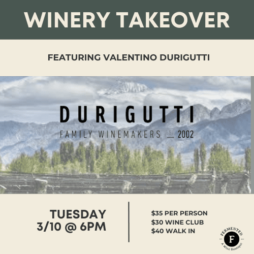 For $40/person, you’ll enjoy five varietals, seasonal hors d’oeuvres to accompany your tastings, and pre-sale access to your favorite wines (which are not sold in store!)