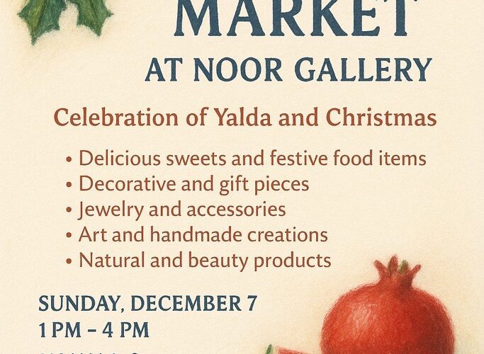 « All Events Winter Market at Noor Studio December 7 @ 1:00 pm - 4:00 pm « JUSTIN Annie » A Christmas and Yalda themed small business market within our art gallery Free entry to the public Add to calendar Google Calendar iCalendar Outlook 365 Outlook Live Details Date: December 7 Time: 1:00 pm - 4:00 pm Event Category: Arts Website: Event Website » Venue Noor Studio and Gallery 390 N. Main St. Alpharetta, Georgia 30009 + Google Map Phone (770) 561-4564 Venue Website » Related Events Vibe at Five! $5 Wine! Rustic Winter Snowman! December 5 @ 5:00 pm - 7:00 pm Alpharetta Chorus Nighttime Sing-Along December 5 @ 7:00 pm - 9:00 pm Annie December 5 @ 7:30 pm - 9:30 pm|Recurring Event (See all)An event every week that begins at 7:30 pm on Friday, repeating until December 19, 2025An event every week that begins at 7:30 pm on Friday and Saturday, repeating until December 20, 2025An event every week that begins at 2:00 pm on Sunday, repeating until December 21, 2025