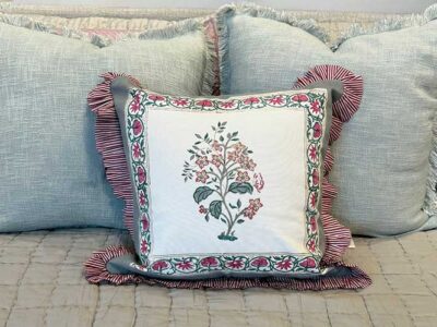Add a pop of pattern and refreshment to any room with this soft, beautifully detailed, 100% cotton accent pillow made in India. - Menus—A Book for Your Meals and Memories—La Bella Maison